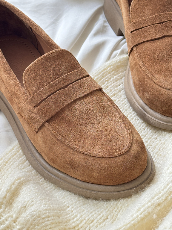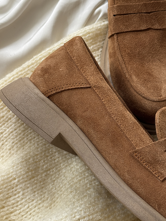 Эти лоферы из мягкой натуральной замши — сочетание комфорта, лаконичного дизайна и универсальности. Модель с округлым мысом легко впишется в повседневные образы, оставаясь актуальной вне зависимости от сезона и трендов.