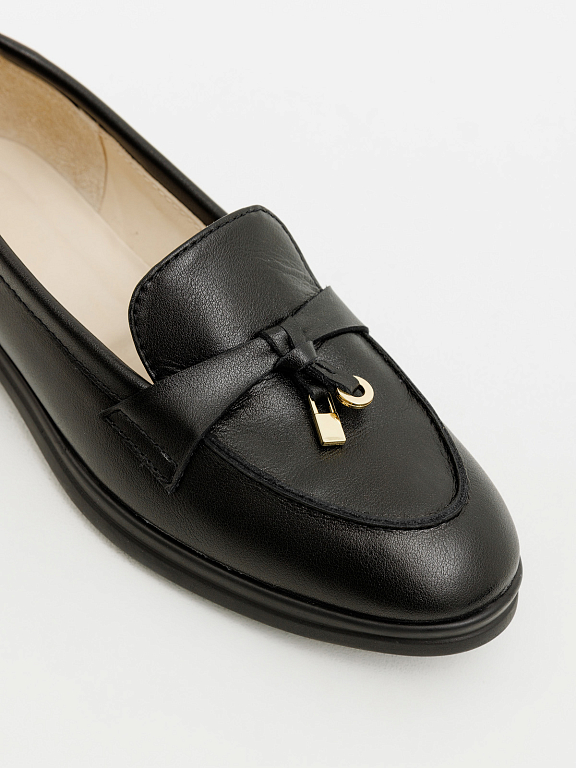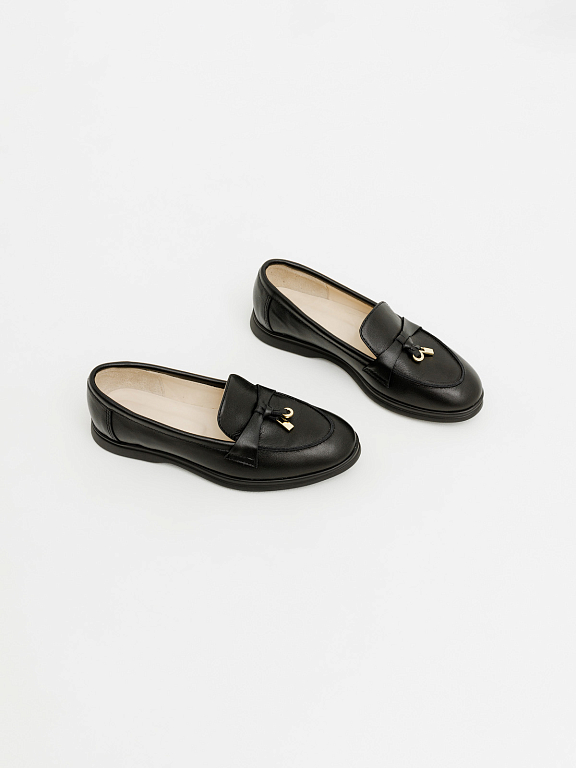 Элегантные лоферы с навесным украшением — это баланс между классикой и современной стилистикой. Актуальный силуэт легко впишется как в деловой гардероб, так и в повседневные образы. Модель выполнена из натуральных материалов и обеспечивает комфорт в течение всего дня. Деталь-украшение придаёт образу завершённость и индивидуальность.